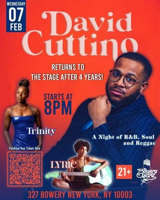 David Cuttino Returns to the Stage after 4 years at the Bowery Electric for a night of R&B, Soul and Reggae music! Stay tuned for Trinity's set of pre-music before David takes the stage!